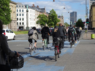 We had been here previously and had seen the attractions of the central city: the Little Mermaid, Tivoli Park, etc., but with sundown not until almost 10pm at this season, upon returning to the city in late afternoon, we did retrace a walking route through the city itself. Copenhagen has extensive pedestrian-only street connections, plus many canals and regular streets. You will always find a bike lane.